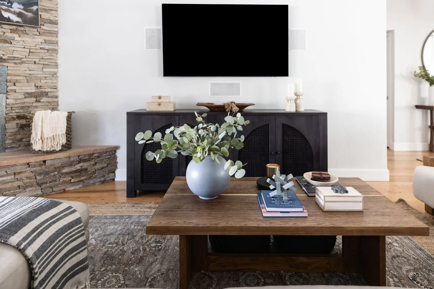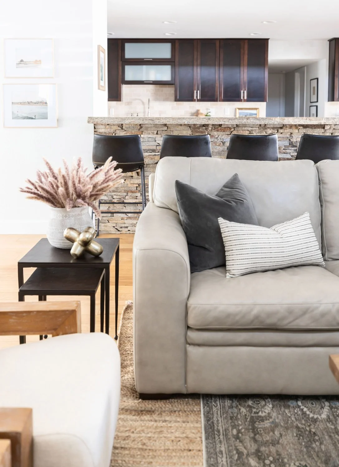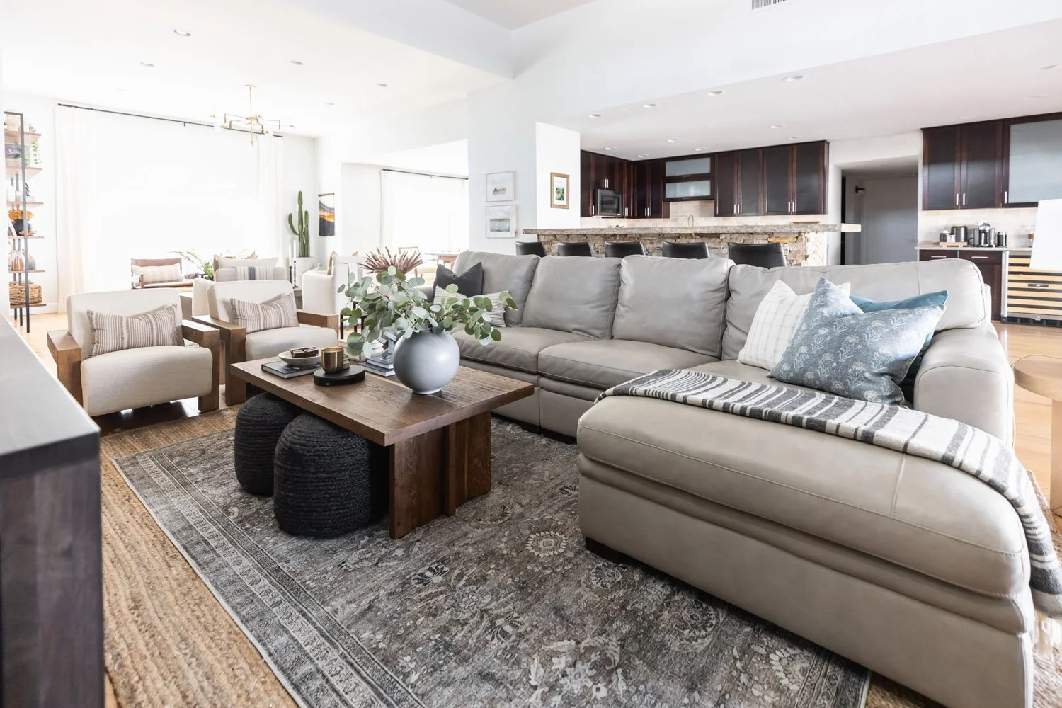 Our clients have three kids, two dogs, and love to entertain. Functionality and durability were both important factors in all the pieces we selected for them. We gave them spaces in their home that are not only beautiful and functional for entertaining, but also felt cozy and relaxed for a lazy Sunday movie as a family.